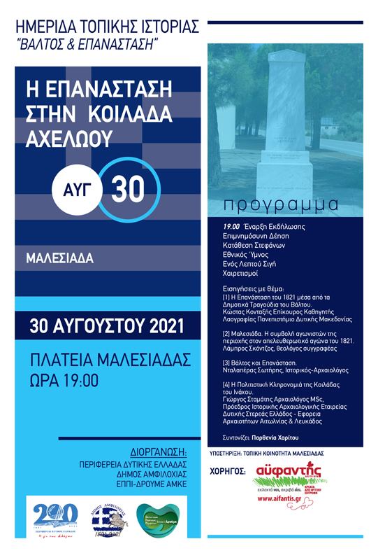 Presentations by academics, local writers, descendants, etc., on the topic: The first borders of the Greek State, The house of the wife and children of G. Karaiskakis, Ragos, Skylodimos, Kontonikas, Oikonomou, Psarogiannis, unknown warriors.
